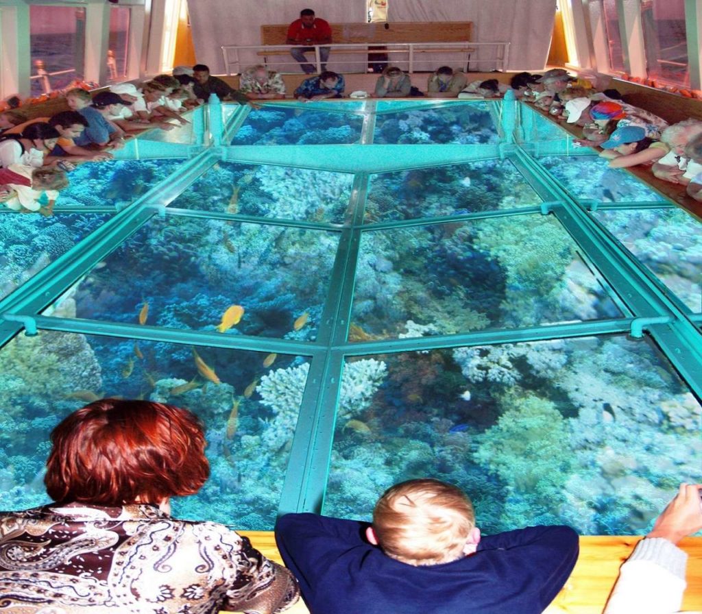 Visiting a tour on one of the glass-bottom boats, you will have the opportunity to see the beauty of the underwater world of the Red Sea. With their help, you can, without wearing scuba gear, plunge into this wonderful world, see a variety of fish and corals of incredible colors, shapes and shades. And what beautiful fishes live there! And you will feel like a piece of this underwater world. It will be especially interesting for small children and adults who cannot or have not learned to swim yet.
