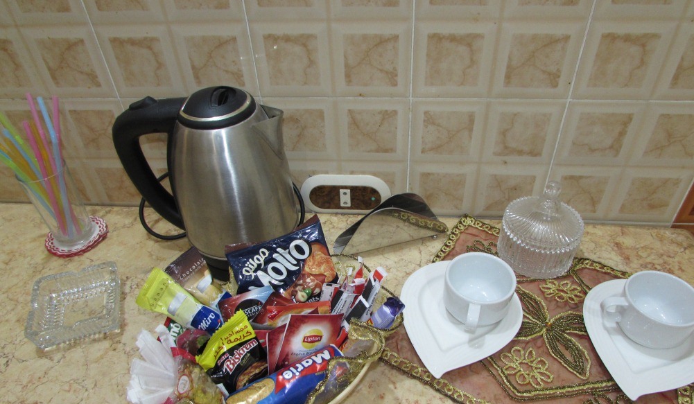 Free mini-bar (several types of excellent tea, coffee, milk for coffee, coffee with milk, hot chocolate and other hot drinks, sugar, sugar substitute, jam, chips, crackers, croissants, chocolate, cookies etc.). Also in the minibar is drinking water, coca-cola, sprite.